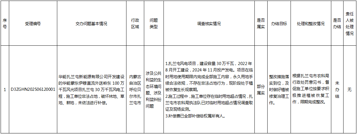 中央生态环境保护督察群众信访举报转办和边督边改公开情况一览表